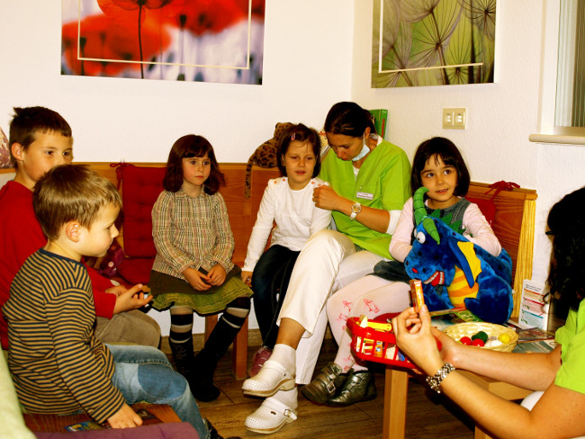 Wir bieten unseren kleinen Patienten die Möglichkeit, die Praxis kennenzulernen und zusammen mit unserem Personal "Doktor-Patient" zu spielen.